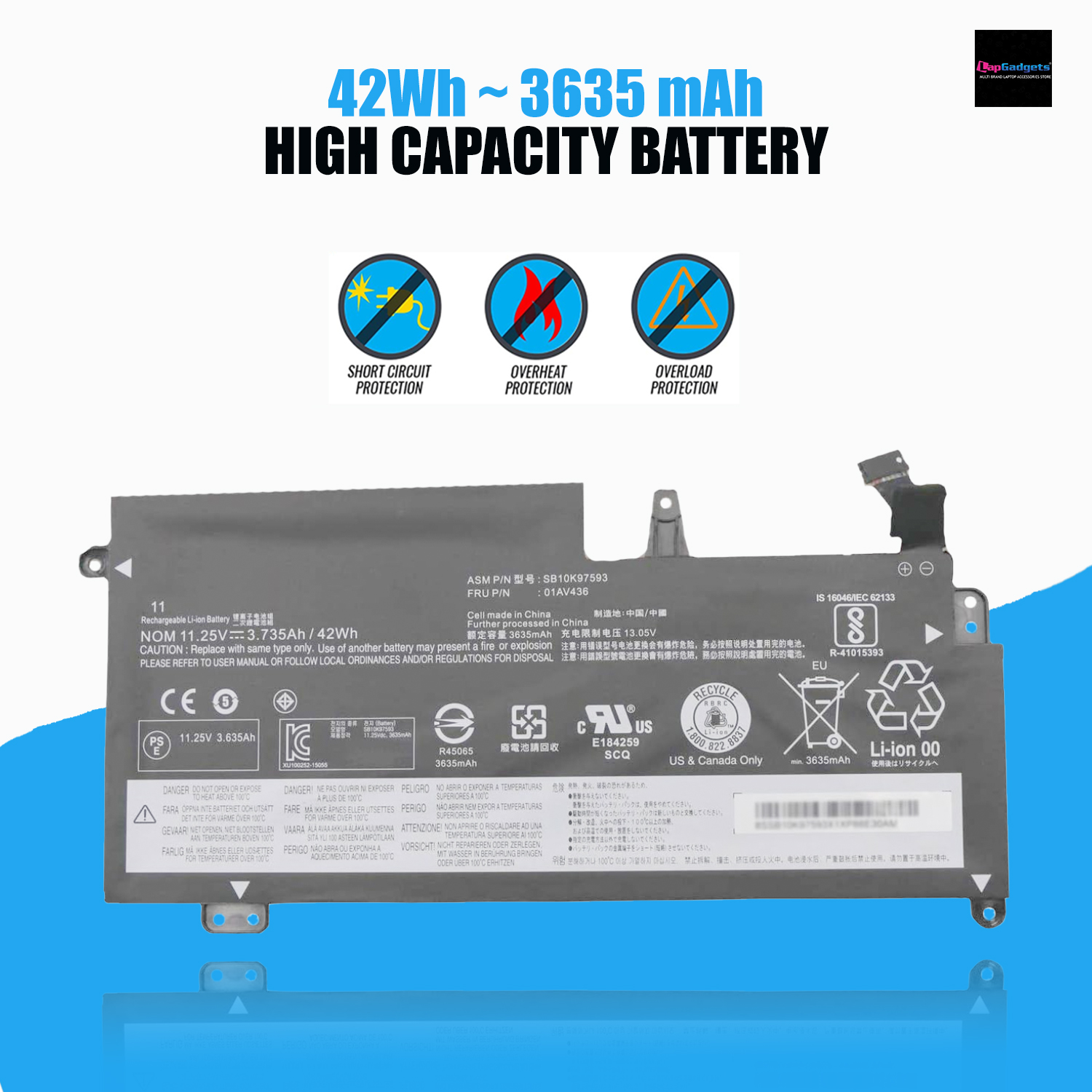 Using a poor battery with unstable performance may do harm to the notebook and your safety. Our Lenovo 01AV400 01AV436 Replacement Battery has passed CE, UL, ROHS, and other international authority certifications, which provides a variety of protection functions, effectively preventing common risks such as short circuits, overheating, and overvoltage. In order to protect your laptop and your safety, please rest assured to purchase our high-quality batteries!