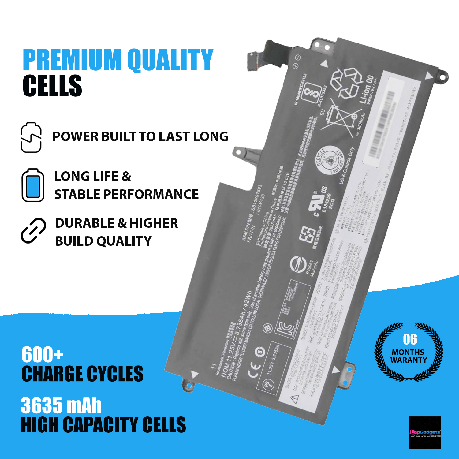 Do not be deceived by the false capacity advertisements from bad merchants, of which battery capacity will often drop off significantly after using a few months. Made with the highest quality “A” grade cells, our Lenovo 01AV400 01AV436 Battery has passed various strict quality tests to ensure that it meets OEM specifications, which can provide more than 600 charging cycles to maintain the same capacity for a long time.