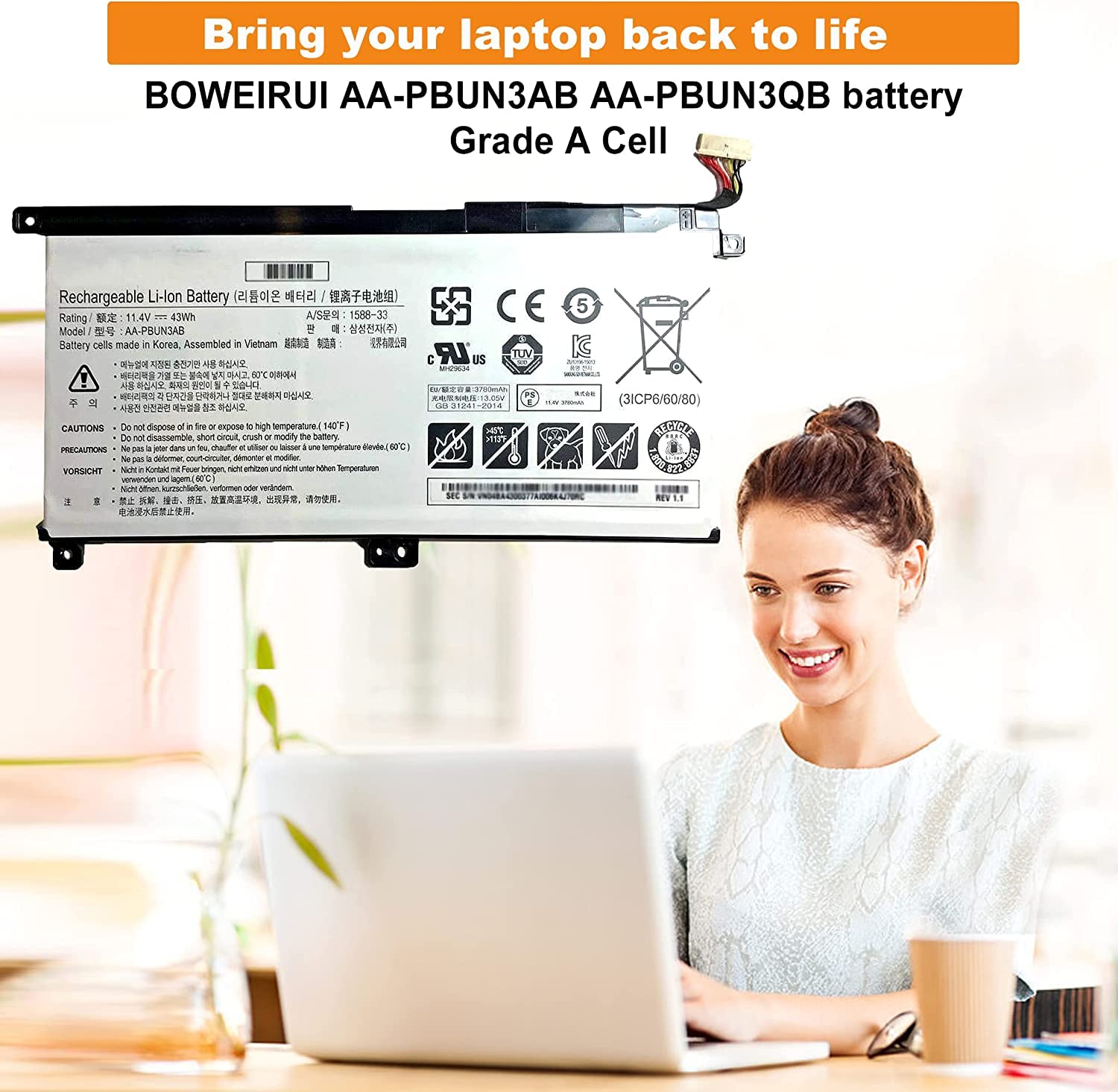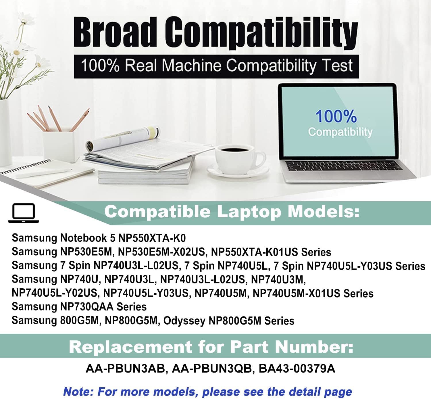 AA-PBUN3AB AA-PBUN3QB Laptop Battery for Samsung Notebook 5 NP550XTA-K0 NP550XTA-K01US NP530E5M NP740U NP740U3L NP740U5L NP730QAA Odyssey NP800G5M Series
