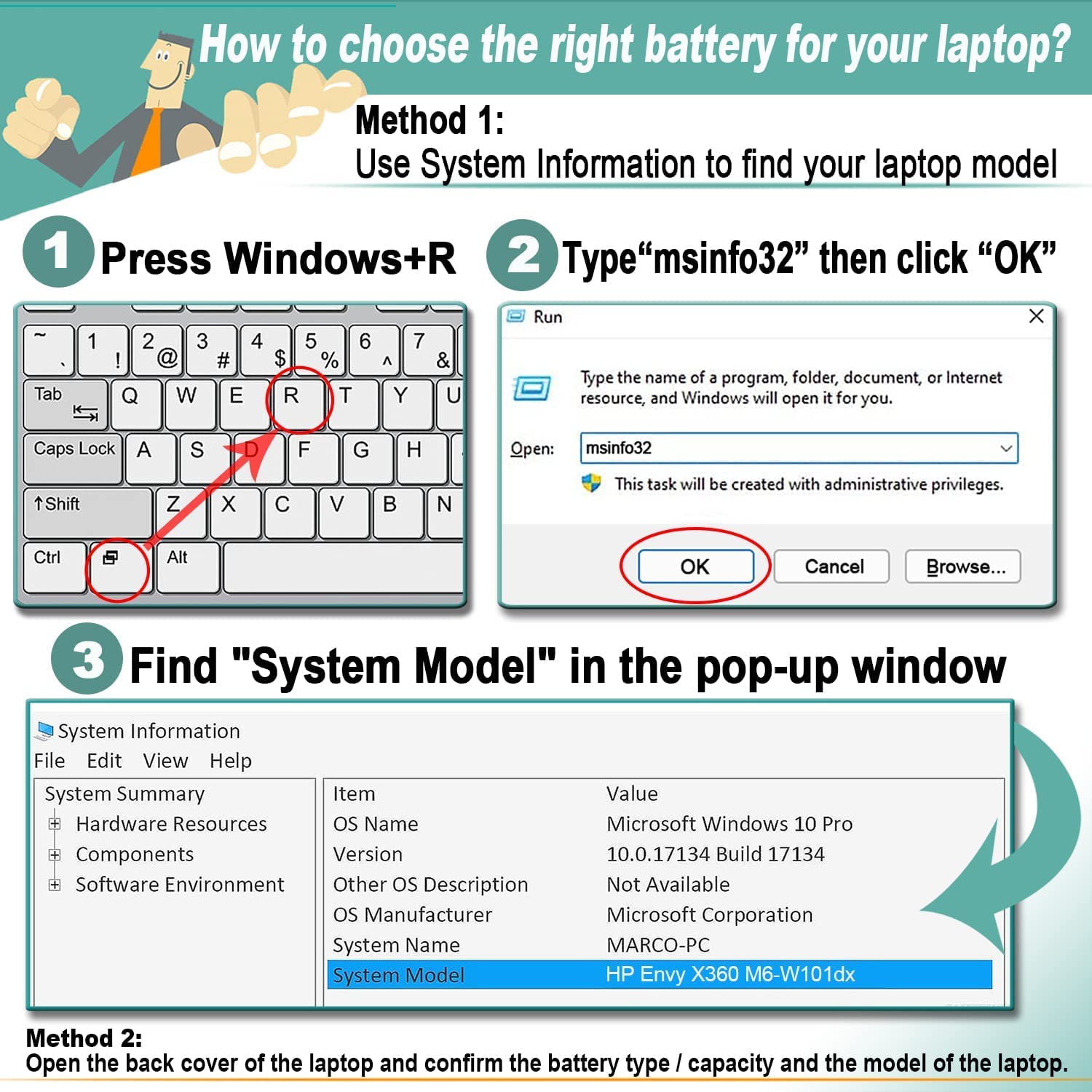 – also you may be able to find you laptop specifications on manufacturers website using the laptop serial number, service tag or the model number (in Support section).