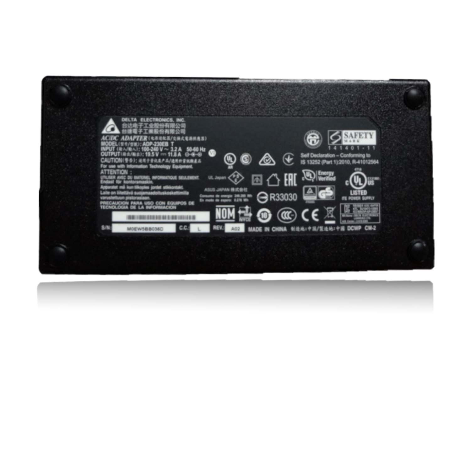 - Output: 230W 19,5v 11,8a or 19V 12.11A (Replacing Chicony, Delta 230W adapter)