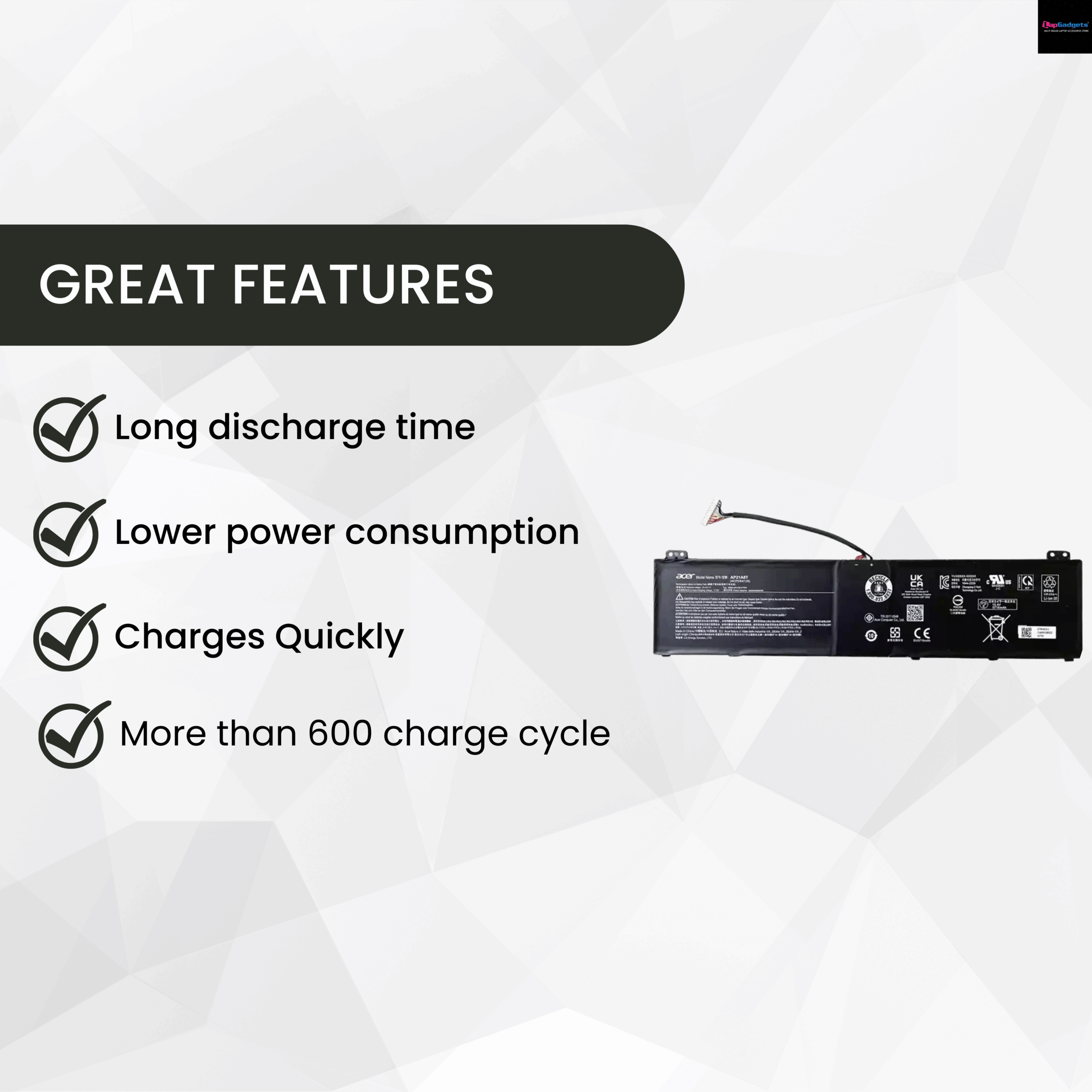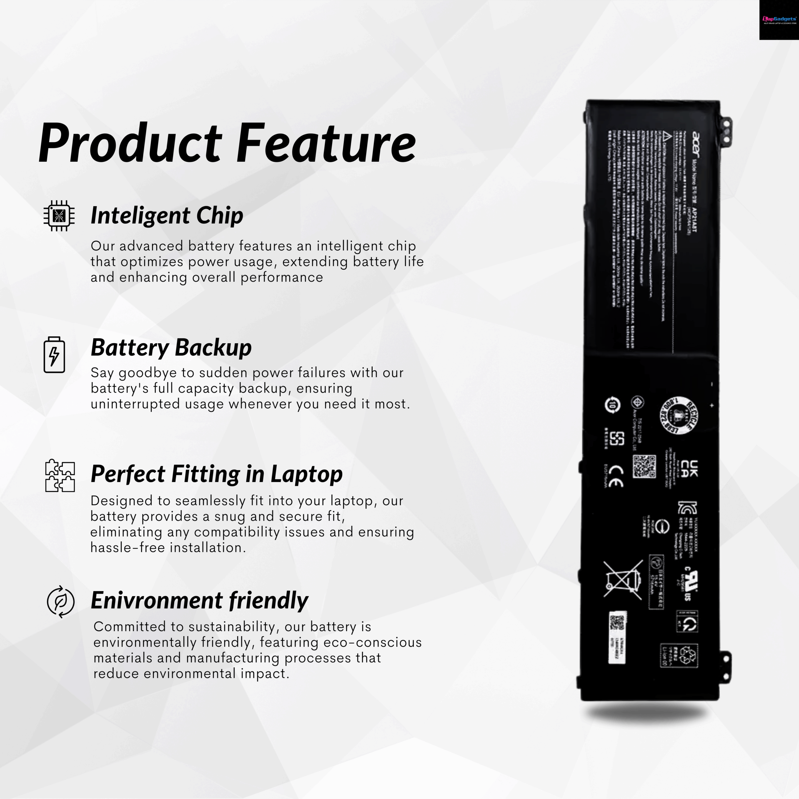 | Model Compatibility | AP21A8T / AP21A5T / AP21A7T – Supports Acer Predator Helios 300, Helios 18, and Nitro 5 AN517-55 series. |