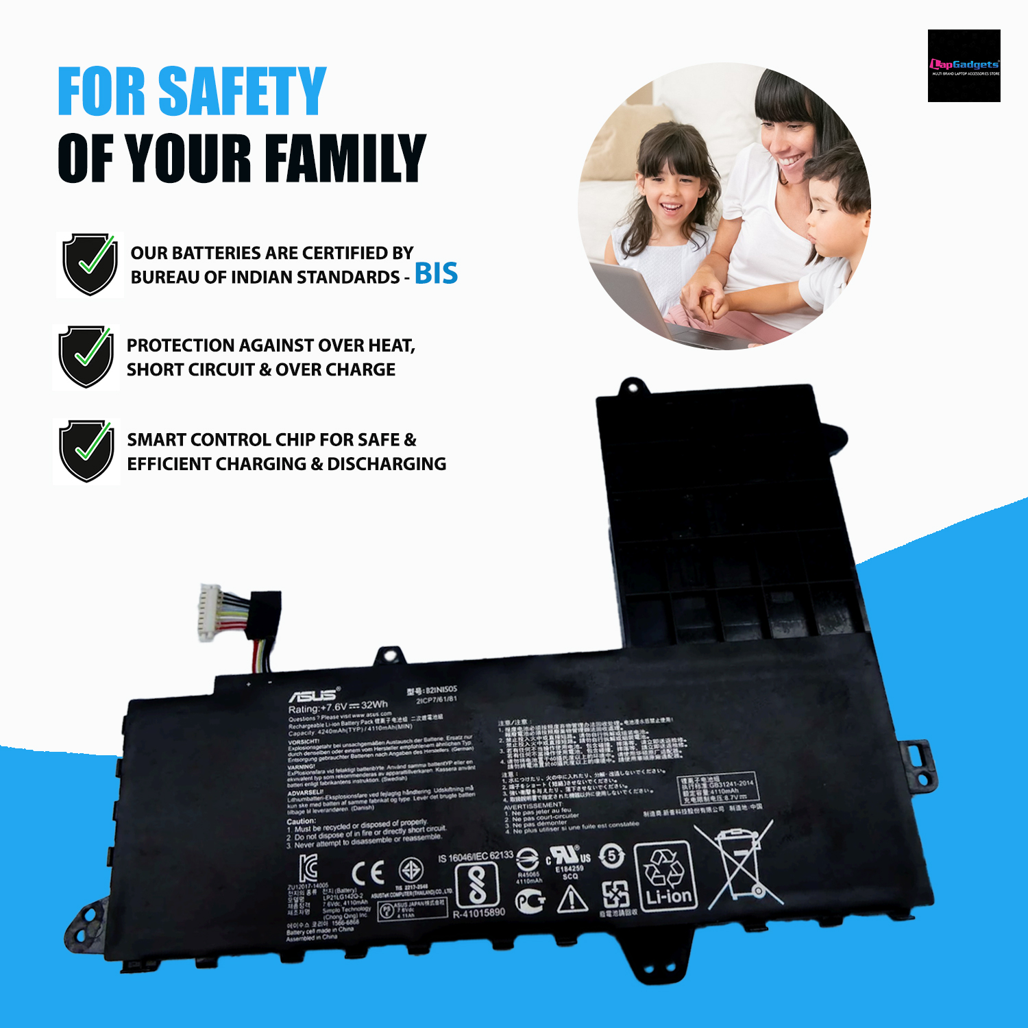 - Indian BIS Certified safe laptop battery