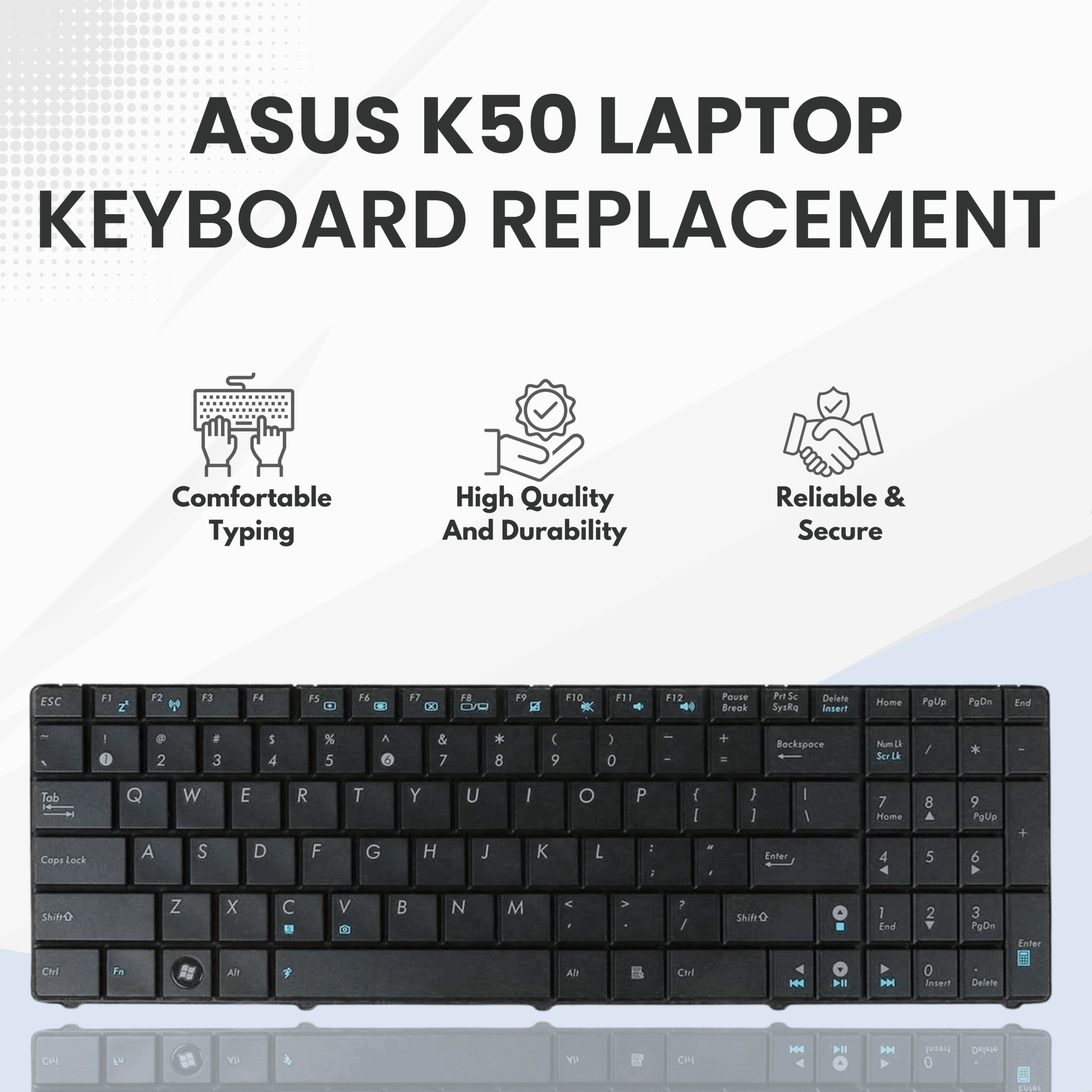 Upgrade your laptop with this high-quality replacement keyboard for ASUS K50, K50A, K50IJ, P50, K51, and compatible models. Designed for US English layout, this black internal keyboard offers reliable performance and easy installation. Ideal for fixing faulty, broken, or unresponsive keyboards, it restores your laptop’s original typing experience.