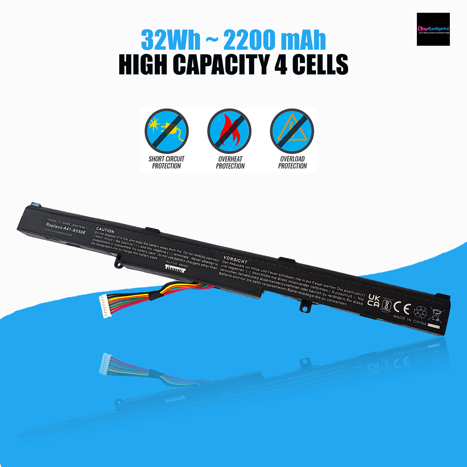 Our brand new 15v replacement Asus A41N1501 battery is made with high quality cells ( SANYO, BAK, SAMSUNG etc.), lasting as long as the original battery did. All of our Li-ion replacement batteries for Asus A41N1501 have been tested and proven to match and/or exceed original battery performance and 100% compatible with Original Manufacturer Specifications. Every piece of Asus A41N1501 has been tested on Asus systems to ensure the safety for your Asus laptop.