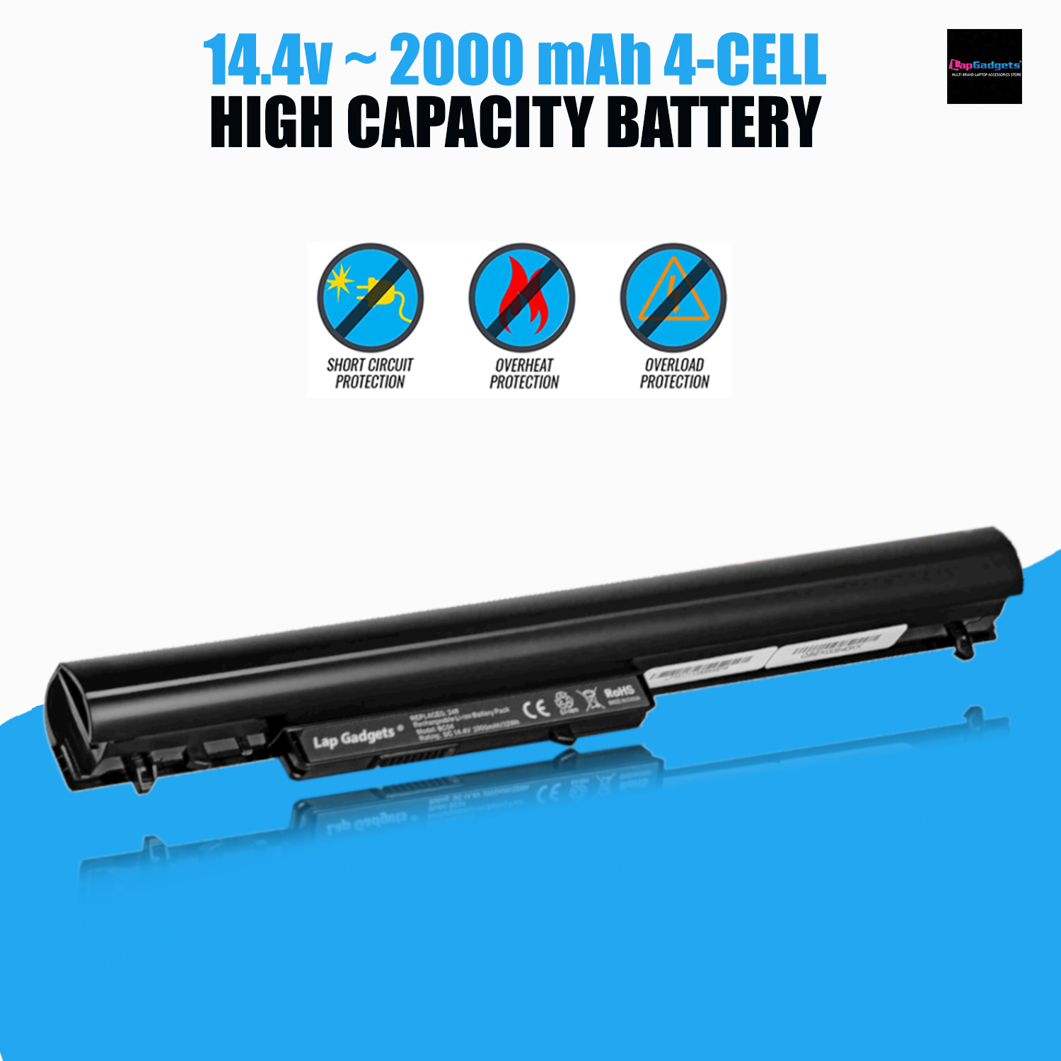 Every piece of replacement HP LA04 Notebook battery pack is under the united protection of the PCP board, PCM board and intellectual power measurement circuit: automatically adjusting the charging time to achieve the maximum amount of charge, with over-charge protection, over-discharge protection, over current protection and short circuit protection.