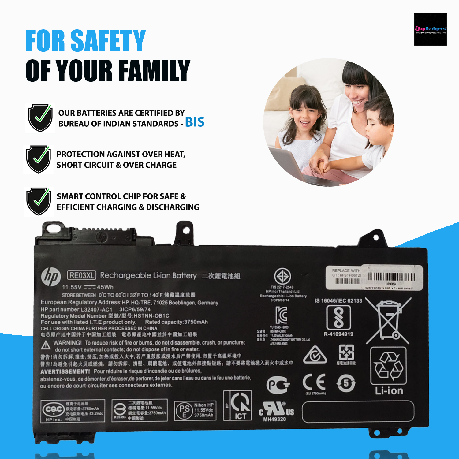 Thanks for buying battery for your HP RE03XL at lapgadgets.co.in In order to ensure the quality of our replacement HP RE03XL battery and offer you a 100 percent satisfaction with our products, we will strictly test the product quality before shipment