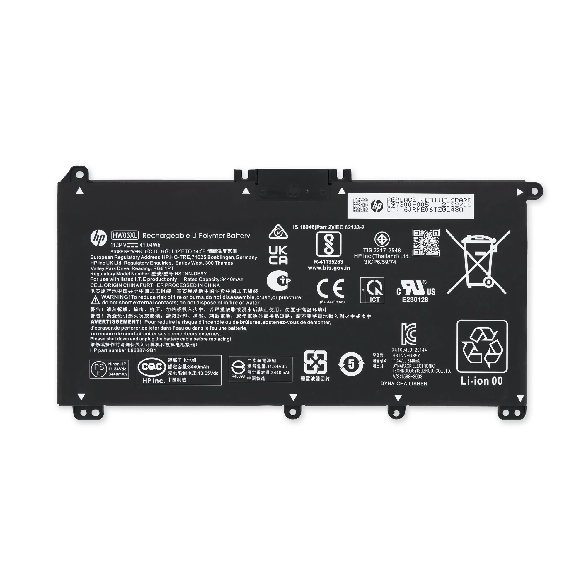 HW03XL L97300-005 Battery for HP Pavilion 15-EG 15-EH 17-CN 17-CP 250 G9 255 G8 470 G10 11.34 voltage, 3440 mAh, 3 cells