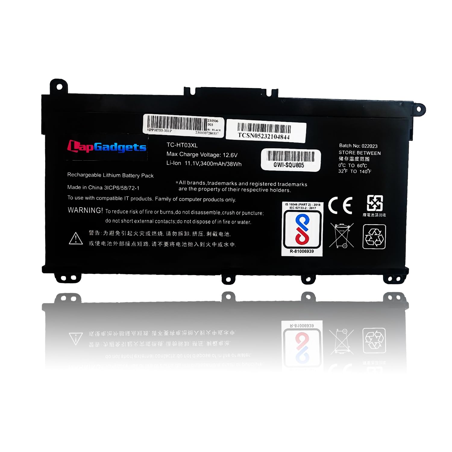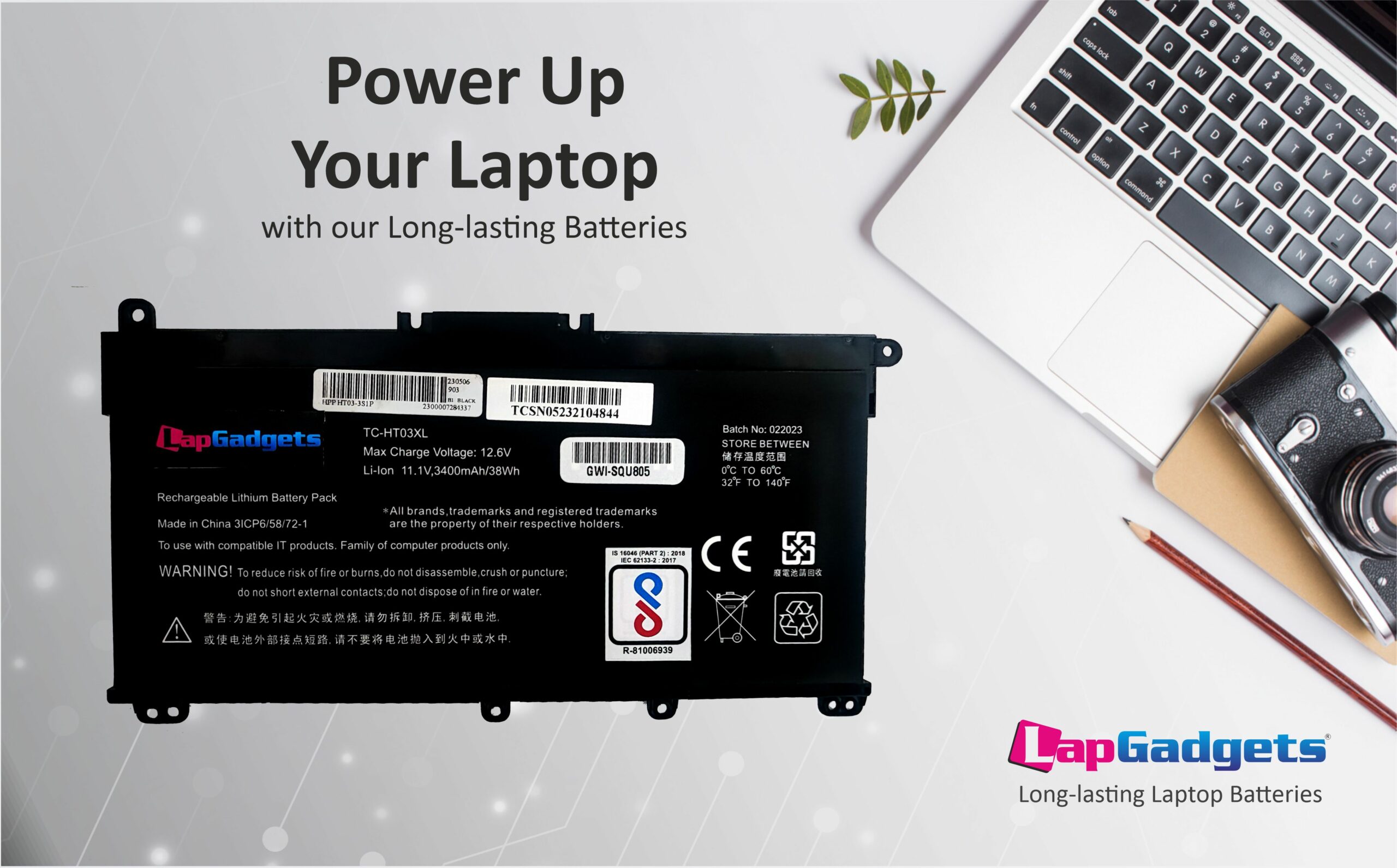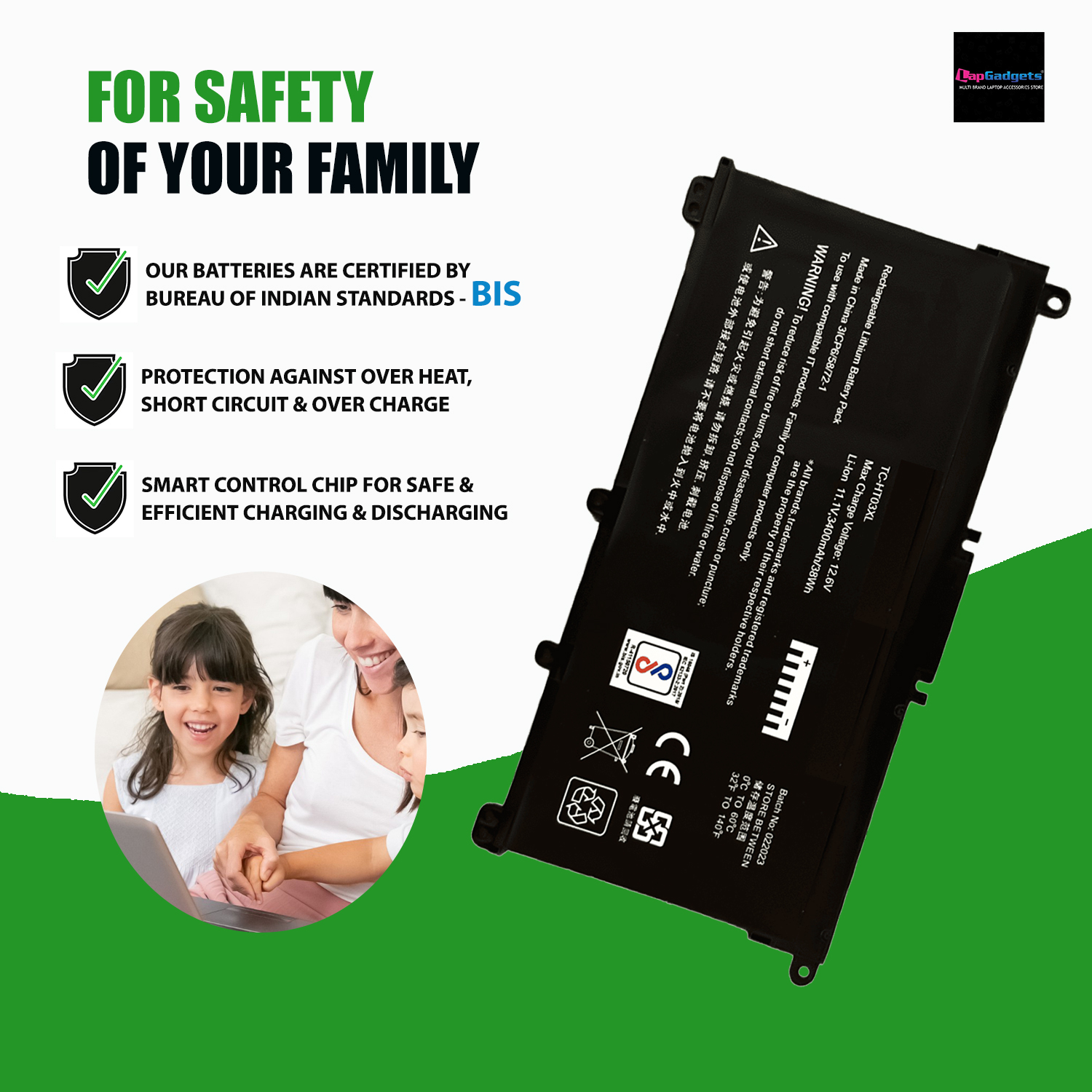 - Indian BIS Certified safe laptop battery