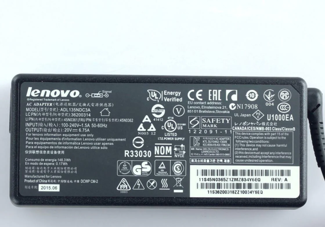 Lenovo 135W AC Power Adapter Laptop Charger for Lenovo Y40-70 Y50-70 Y50-80 Y50-70AS-ISE Y700-15ISK 720-15IKB Z710 ThinkPad T440P T470p T540p ADL135NDC3A Supply Cord
