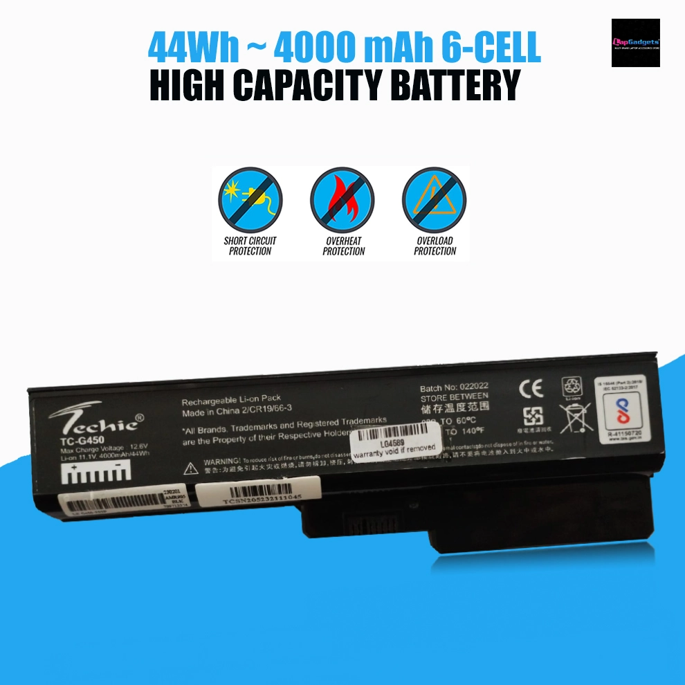 Tech’s laptop battery is a compatible replacement battery for laptops specially designed for the Lenovo G series, including the G430, G450, G530, G550, and G550-2958LEU/2958LFU models. It provides a reliable and affordable solution to extend the battery life of your device.