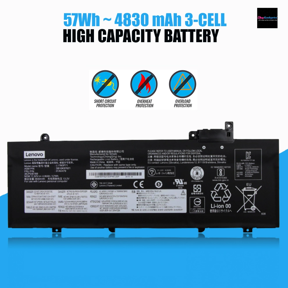 Lenovo Original Laptop Battery L17M3P71 SB10K97621 L17M3P71 SB10K97621 (3 Cell Battery, 57Wh, Li-ion)