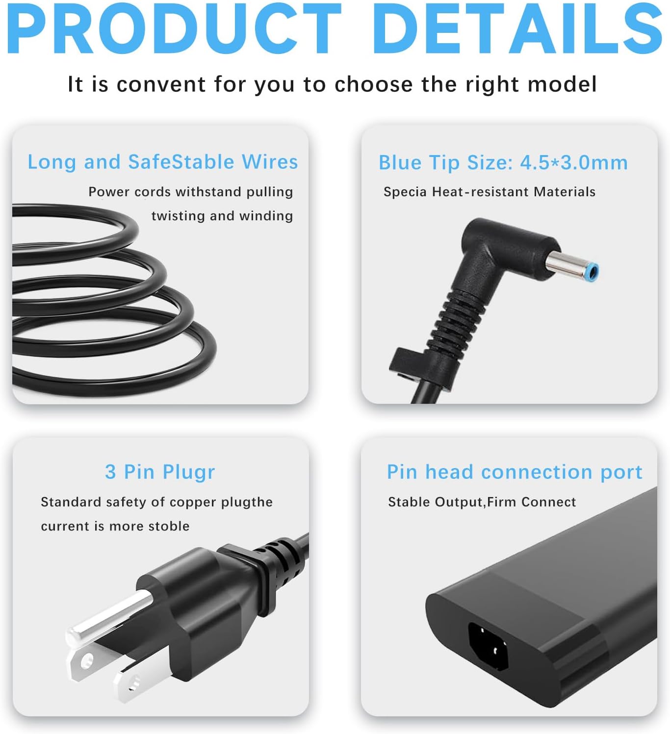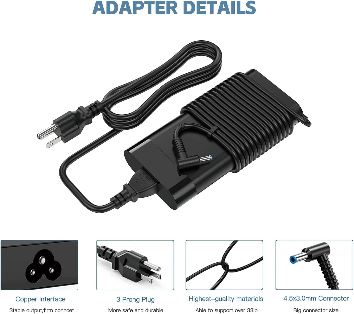 🔌 Durable build, universal AC input (100-240V), and portable design with 4.5×3.0mm tip for secure fit.