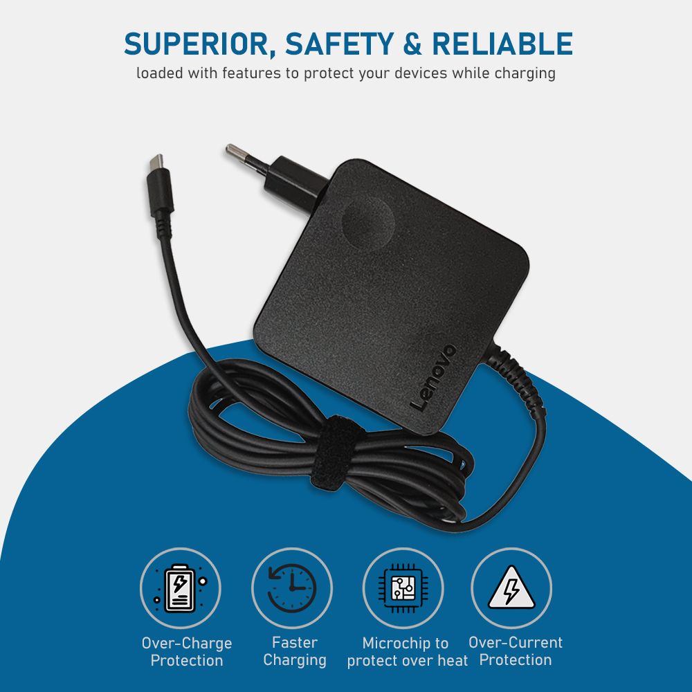 Lenovo 65w type c charger to keep you connected always to carry out your important work on your Thinkpad, Ideapad & Yoga Series notebooks. No matter wherever you are.