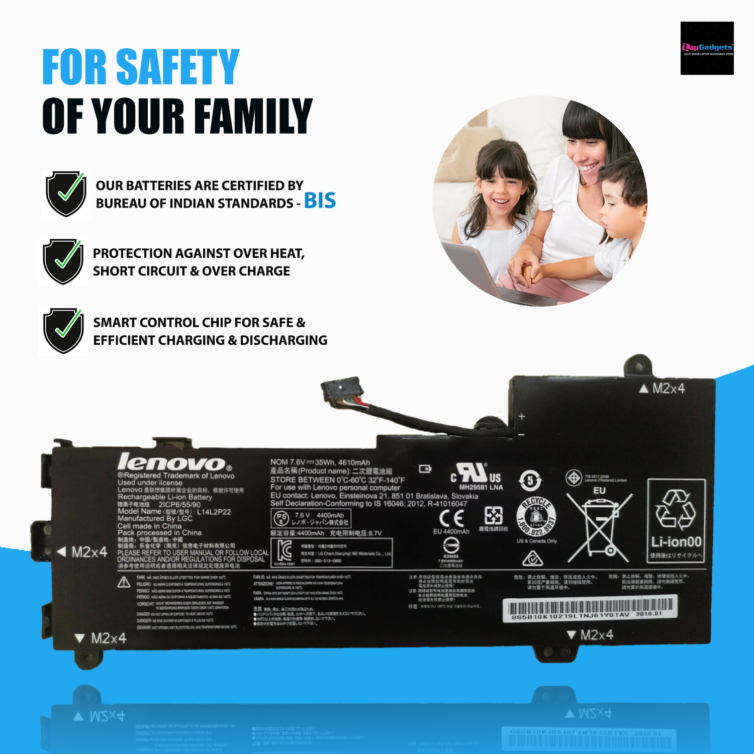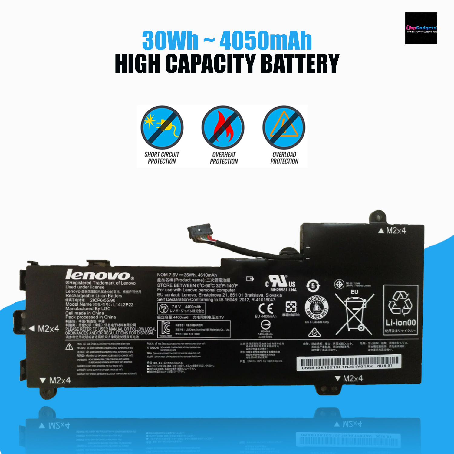 Our brand new 30Wh(7.4V, 4050 mAh) replacement Lenovo L14M2P23 Battery are made with high quality cells ( SANYO, BAK, SAMSUNG etc.), lasting as long as the original battery did. All of our Li-ion replacement batteries for Lenovo L14M2P23 have been tested and proven to match and/or exceed original battery performance and 100% compatible with Original Manufacturer Specifications. Every piece of battery for Lenovo L14M2P23 L14M2P24 laptop has been tested on Lenovo systems to ensure the safety for your Dell laptop.