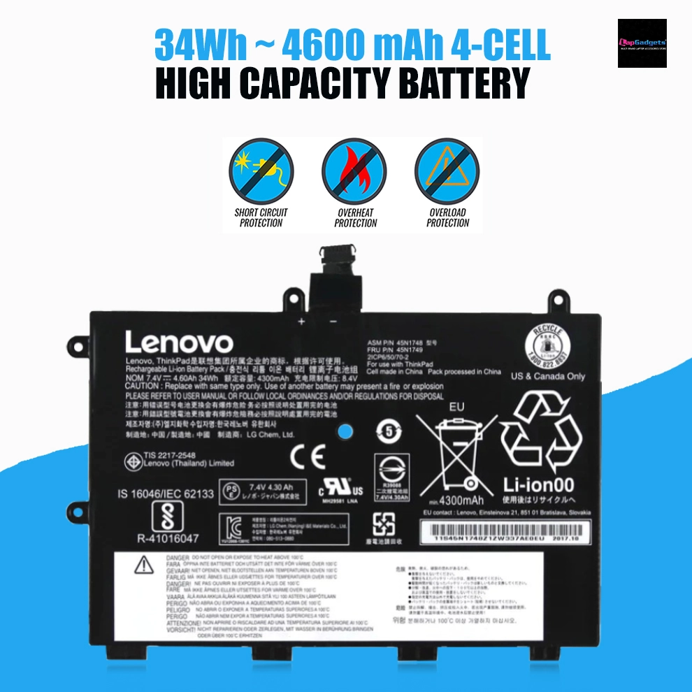Original Lenovo Laptop Battery 45N1750 ThinkPad Yoga 11e 45N1748 45N1749 (4600mAh, 4-Cell)