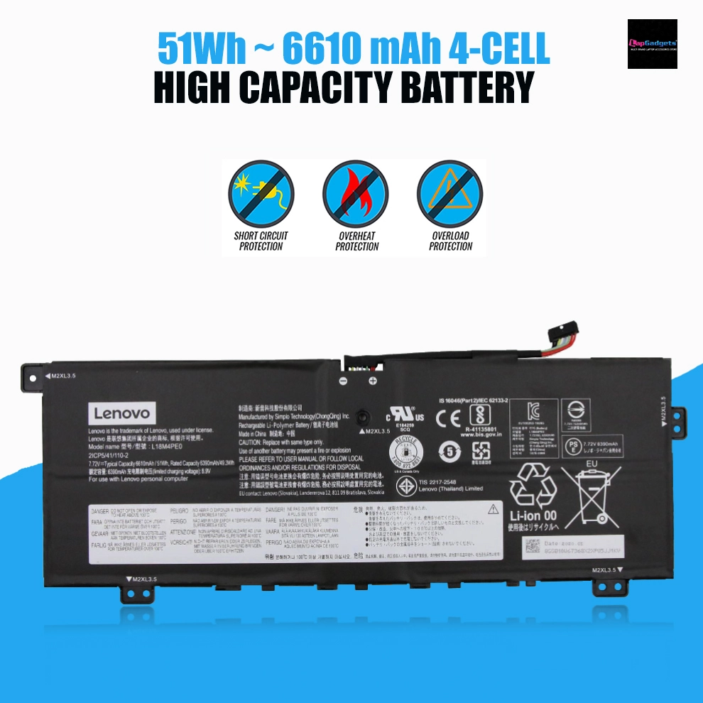 Original Lenovo Laptop Battery L18M4PE0 SB10W67368 (51Wh, 7.72V, Li-ion)