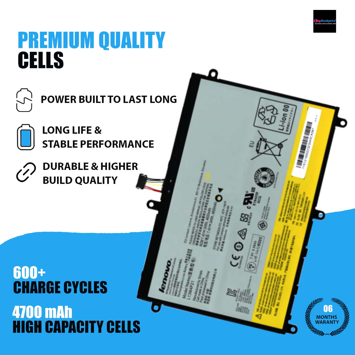 This high quality rechargeable battery for Lenovo L13L4P21 laptop is designed with the highest control standards; have internal circuit boards with smart chips ( Cell imbalance shut off protection, Thermal runaway protection, Overcharge shut off protection, Over discharge shut off protection, High/low temperature shut off protection ), and are made from eco-friendly materials without lead or mercury. Every replacement Lenovo L13L4P21 laptop battery has been Certified by CE, UL, ROHS, ISO9001/9002 and has passed strict safety tests. Long lasting, Lenovo L13M4P21 battery can be charged/discharged for more than 600-800 cycles.
