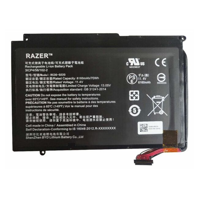 This Razer RC30-0220 Battery replacement has built-in A+ grade cells and high-quality TI intelligent control chip, which not only performs better, charges faster but lasts longer. In addition, the outer shell of the Razer RC30-0220 Battery is made according to the original battery shape design scheme, using high temperature and wear-resistant ABS +PC alloy environmentally friendly materials, which can be 100% compatible with your laptop and fit closely.