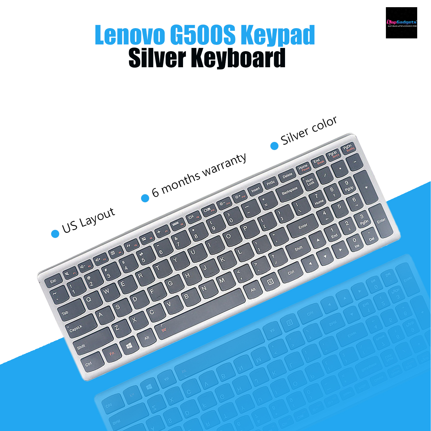 Lapgadgets Silver Backlit Keyboard G500S G505S G510S, S500 S510 S510p (Touch), Z505 Z505A Z510, Flex 15 Flex 15D FLEX15 FLEX15D
