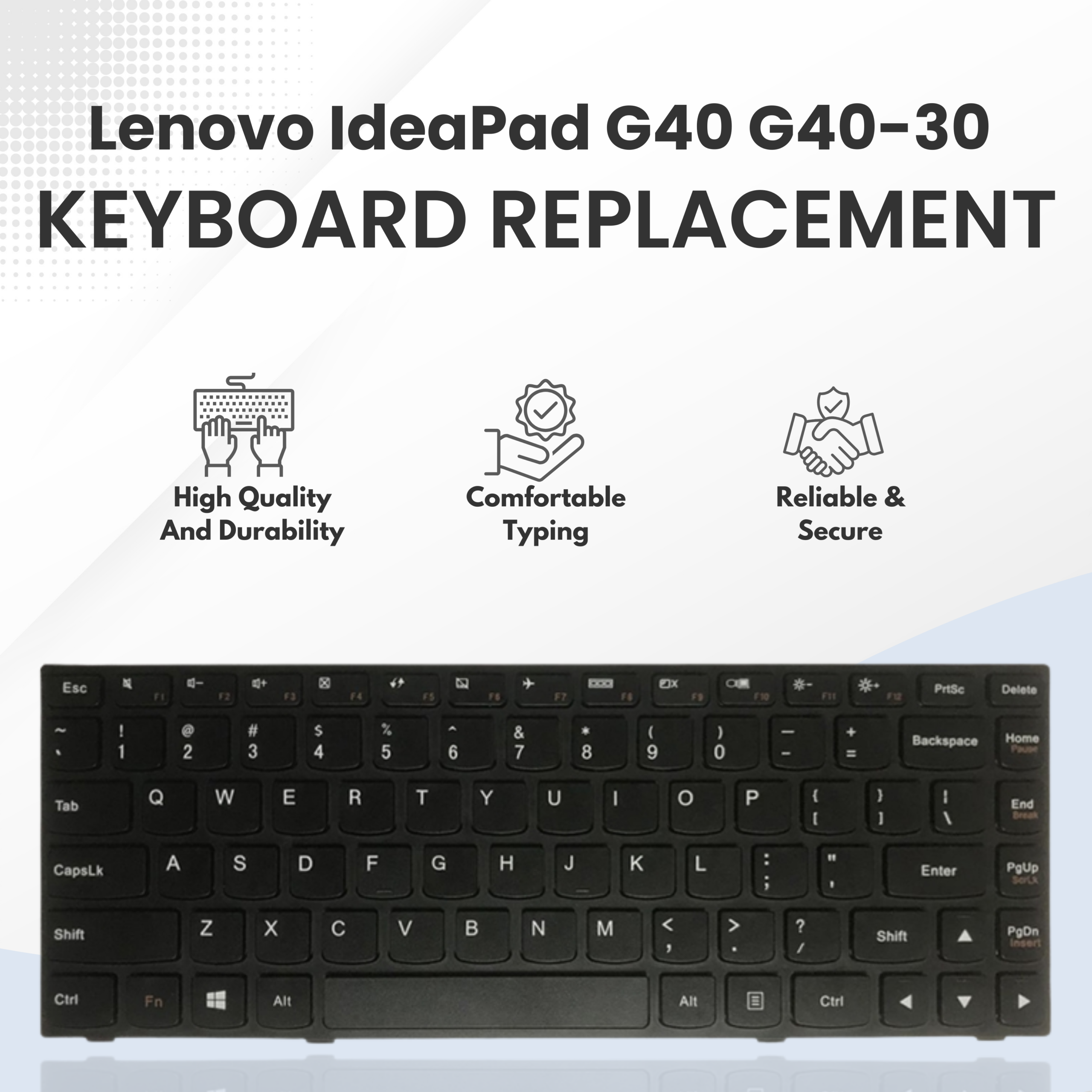 Lenovo G40 US Version Laptop Keyboard by LapGadgets is a high-quality replacement keyboard designed for smooth typing performance and long-lasting durability. This keyboard features a standard US layout with clearly printed keys for accurate input and comfortable everyday use. Manufactured using premium-grade materials, it ensures excellent key response, reliable performance, and a perfect fit without modification. Ideal for replacing damaged, unresponsive, or worn-out keyboards, this Lenovo G40 compatible keyboard restores your laptop’s original functionality and professional look. Designed for technicians and end users, it supports easy installation and delivers consistent performance for office work, study, and daily computing tasks.